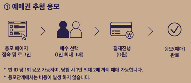 - 티켓링크에서 응모 가능하며, 이 단계에서는 비용이 발생하지 않습니다.
