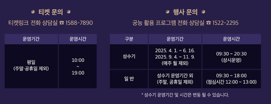 은은한 달빛 아래 창덕궁의 아름다움을 만끽할 수 있는 특별한 행사인 만큼, 예매 정보를 꼼꼼히 확인하시고 참여해 보시기 바랍니다.