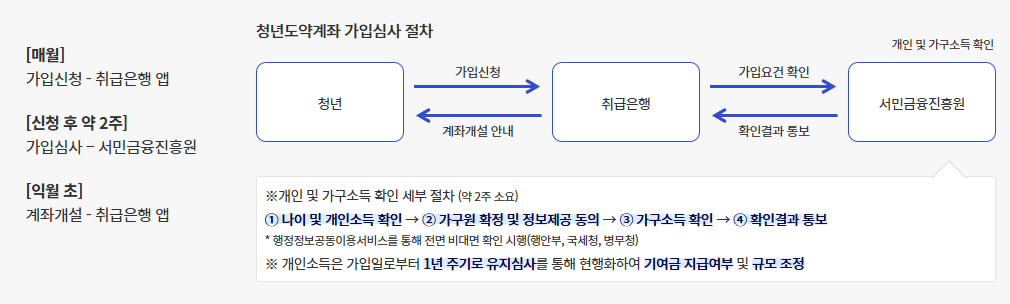 청년도약계좌는 아래 절차를 통해 신청할 수 있습니다.