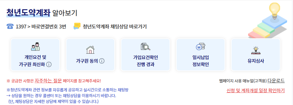 청년도약계좌에 대한 더 많은 정보를 원하시면 정부24 청년도약계좌 또는 서민금융진흥원 방문 바랍니다.