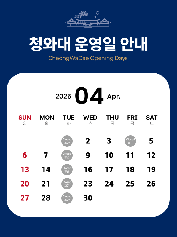 청와대 개방 예약은 매월 말일 전후로 익월 예약 일정 오픈됩니다.