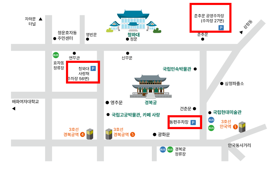 (청와대 사랑채 주차장, 경복궁 주차장 등)