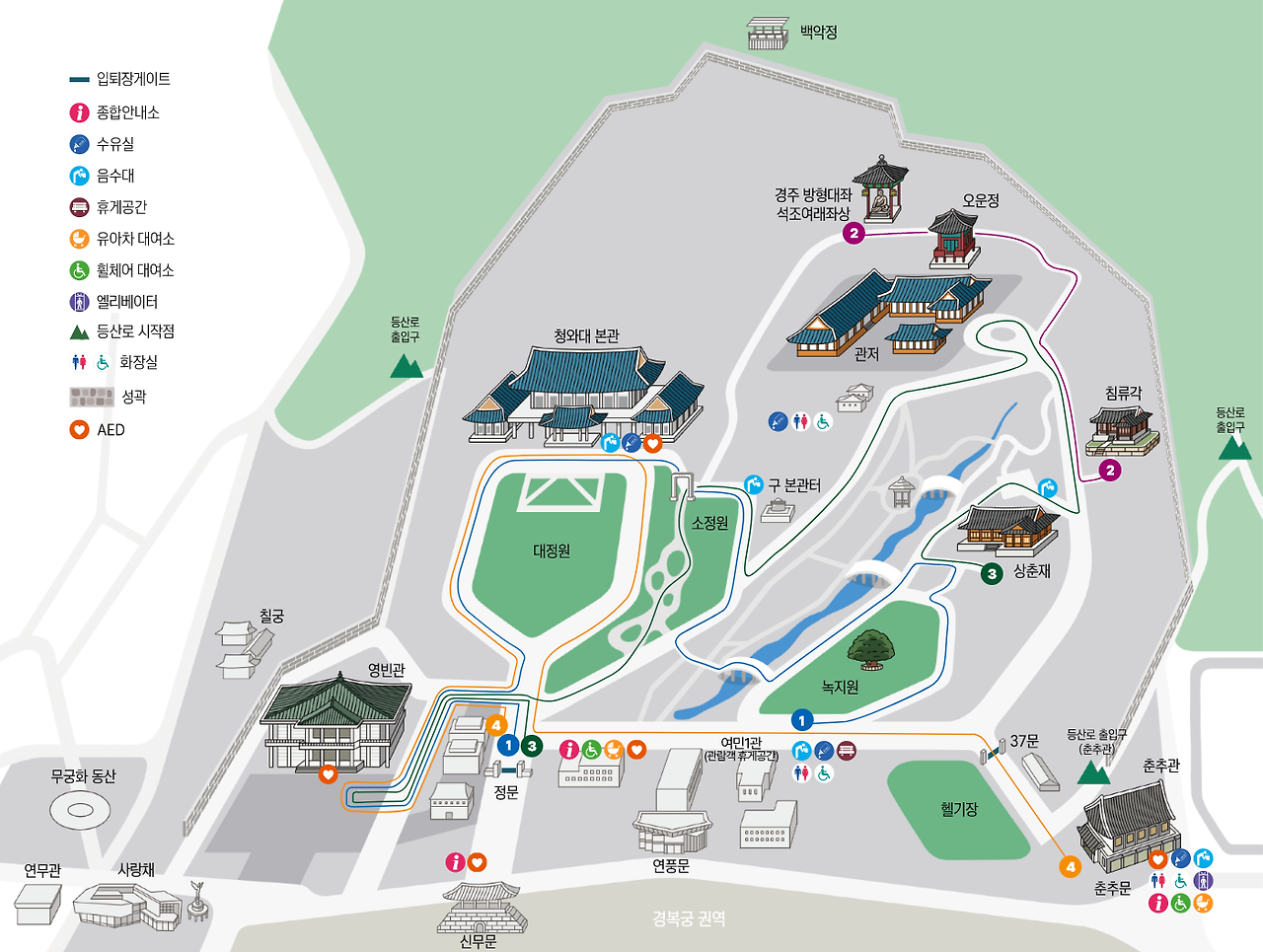 셔틀버스: 경복궁 동편 주차장에서 청와대 시화문까지 운행 (08:30~17:30)