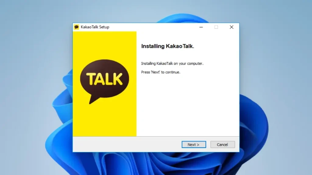 'Next' 버튼을 클릭하여 다운로드한 파일을 실행하여 카카오톡 설치를 시작합니다.