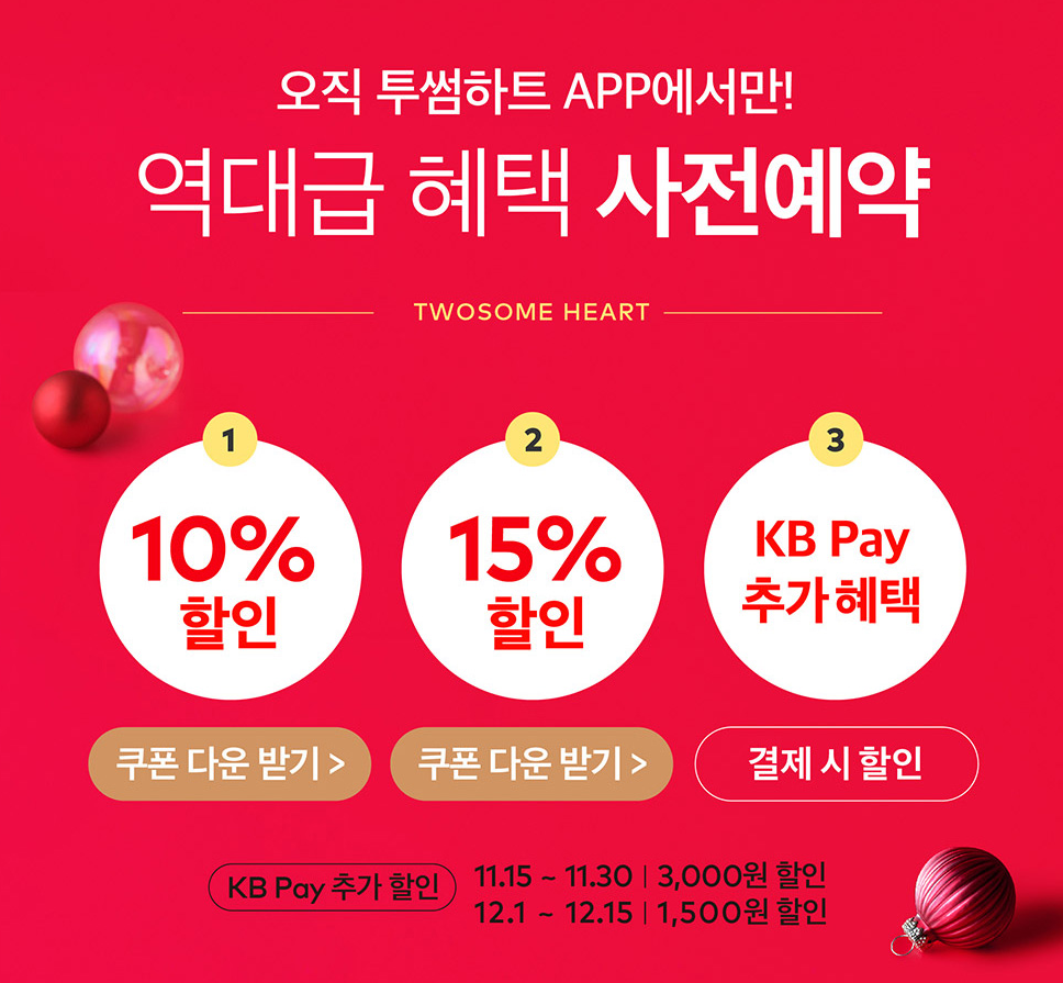 👉 투썸하트 APP 쿠폰 1O~15% OFF