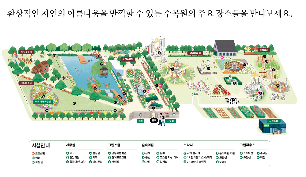 또한, 벽초지수목원은 다양한 테마의 정원이 마련되어 있어, 각기 다른 매력을 느낄 수 있습니다. 예를 들어, 유럽식 정원에서는 고풍스러운 분위기를 느낄 수 있으며, 동양식 정원에서는 차분하고 평화로운 느낌을 받을 수 있습니다.
