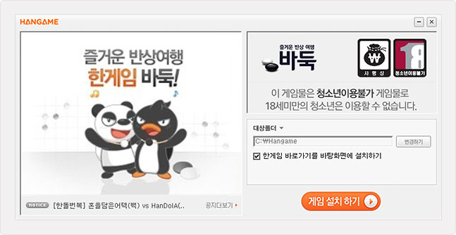 사용 중이신 PC에 한게임바둑이 설치되어 있지 않거나 최신 업데이트가 적용되어 있지 않은 경우에는