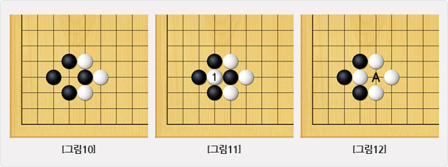 [그림10]의 모양에서 [그림11]과 같이 백이 먼저 흑을 따낼 경우