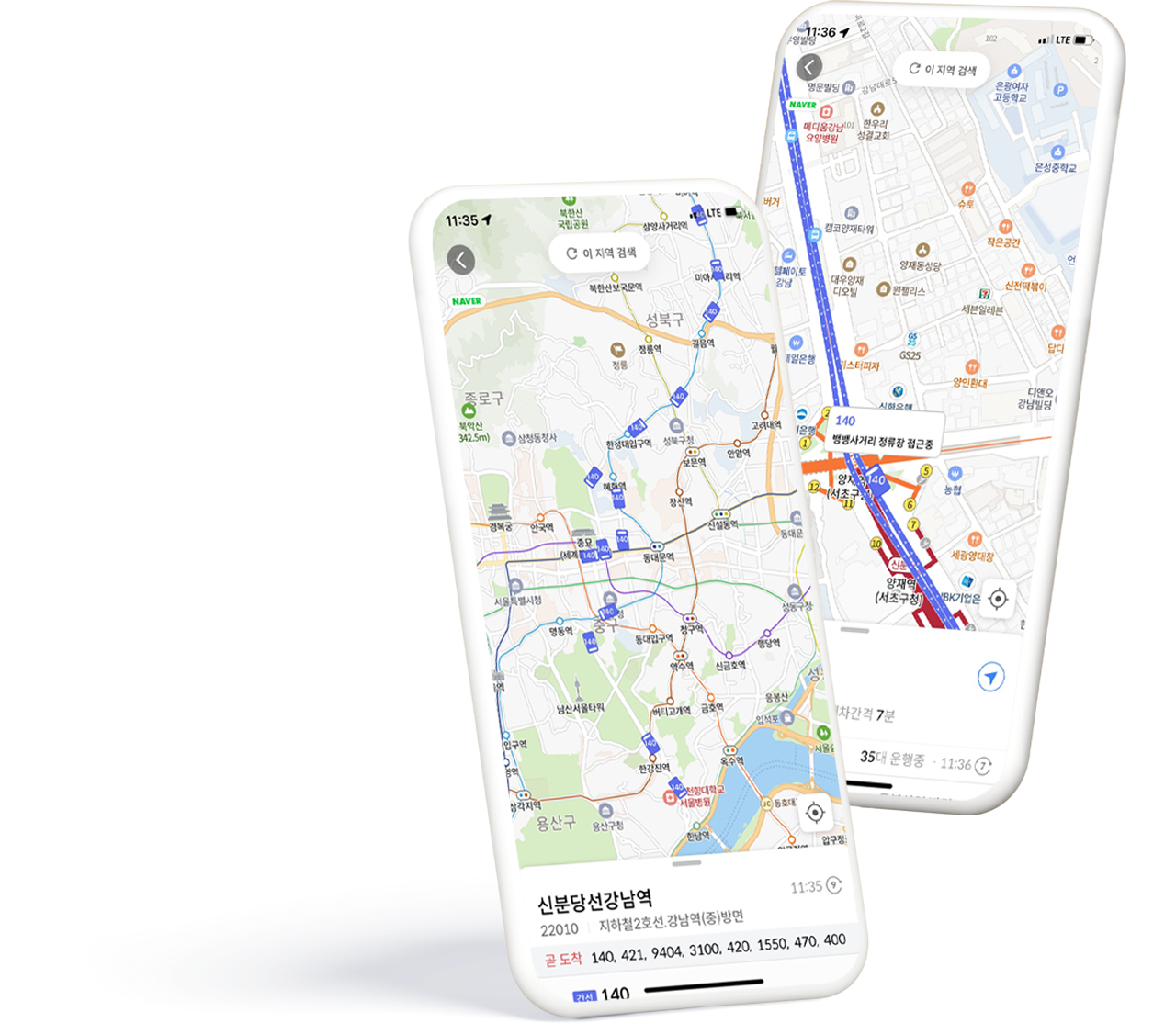 또한, 특정 교통수단을 선택하면 해당 노선의 상세 정보와 함께 실시간 위치 정보도 제공받을 수 있습니다.