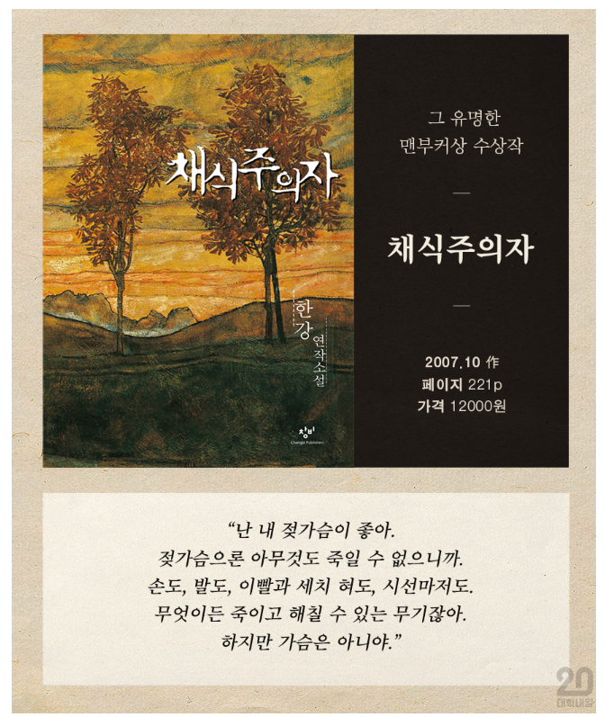 한강의 작품 중 가장 유명한 것으로는 2007년 출간된 '채식주의자'가 있다. 이 작품은 주인공이 채식주의자가 되면서 겪는 심리적, 사회적 갈등을 그리며, 한강의 독특한 문체와 서사 방식이 돋보인다. '채식주의자'는 출간 이후 영미권에서도 큰 반향을 일으켰으며, 여러 언론에 소개되면서 그의 작품에 대한 관심이 높아졌다.