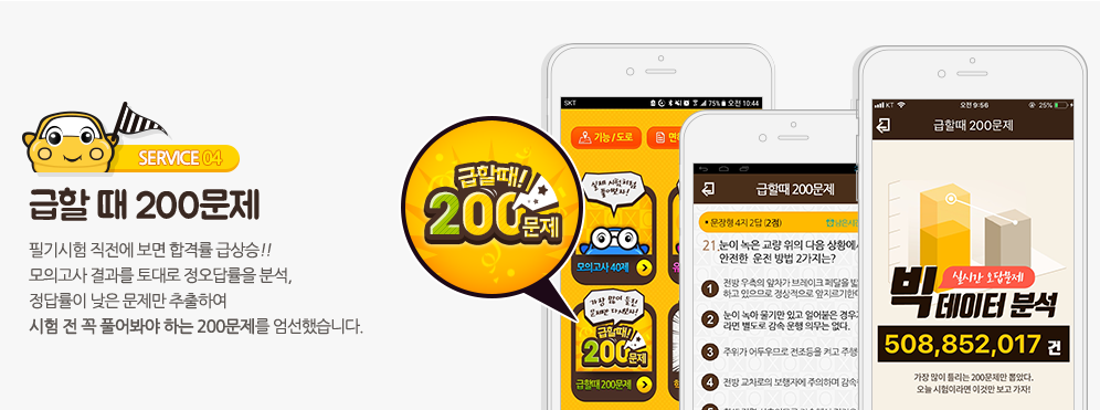 모의고사 결과를 토대로 정오답률을 분석, 정답률이 낮은 문제만 추출하여 운전면허 필기 시험 전 꼭 풀어봐야 하는 200문제를 엄선했습니다.