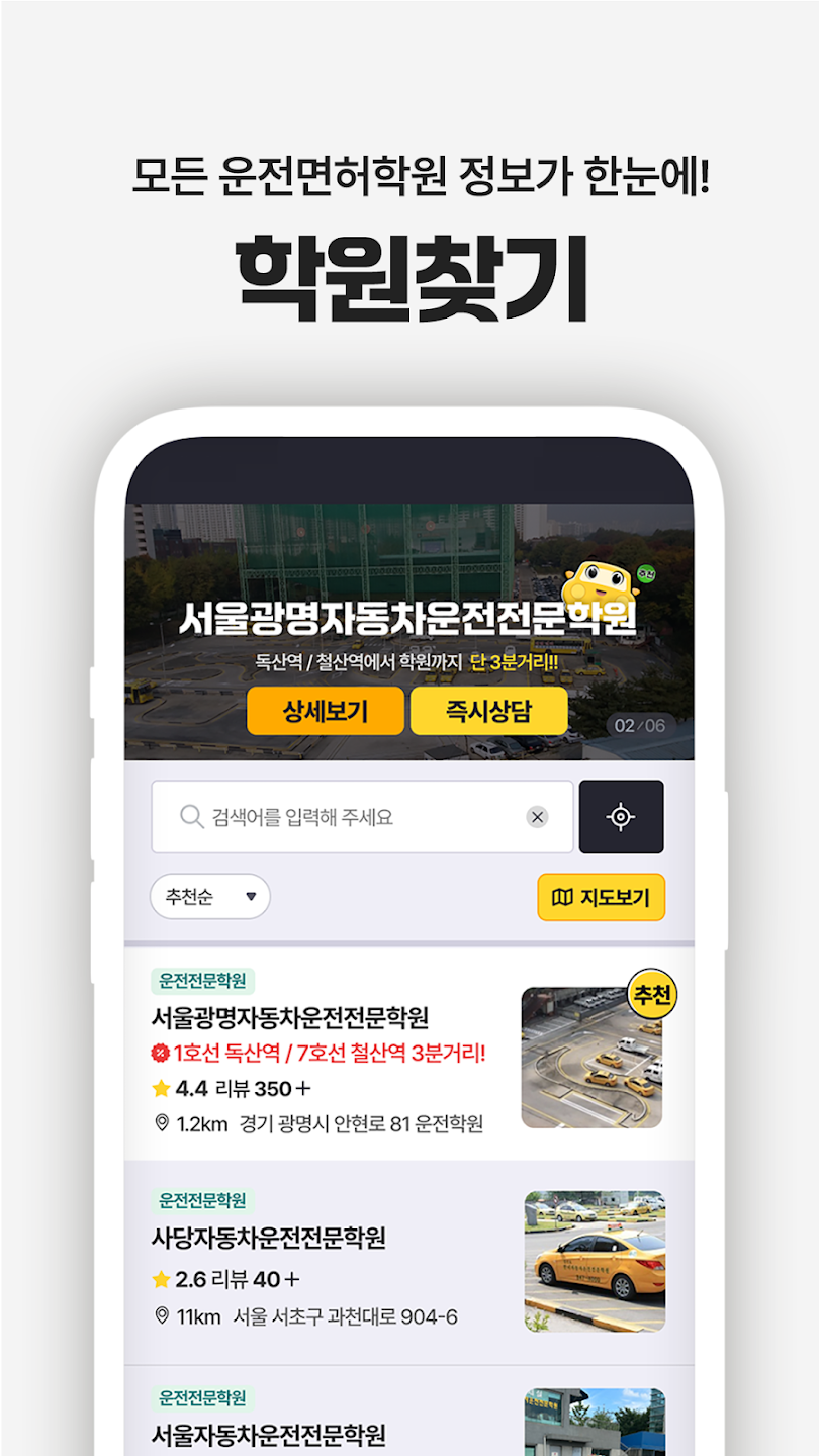 나에게 적합한 운전면허 학원을 선택해보세요.