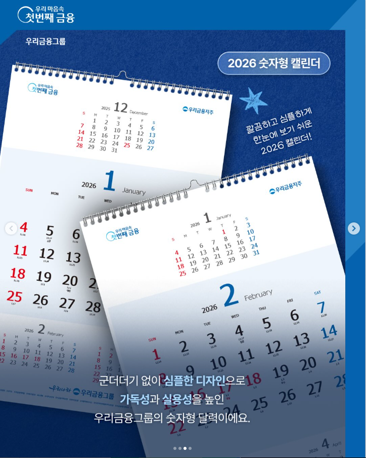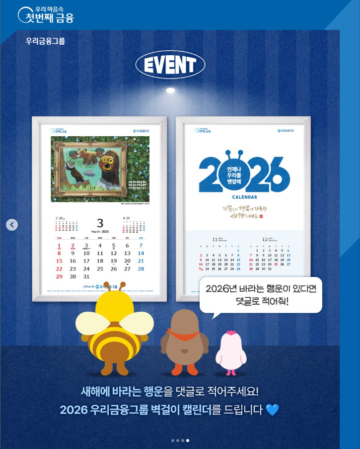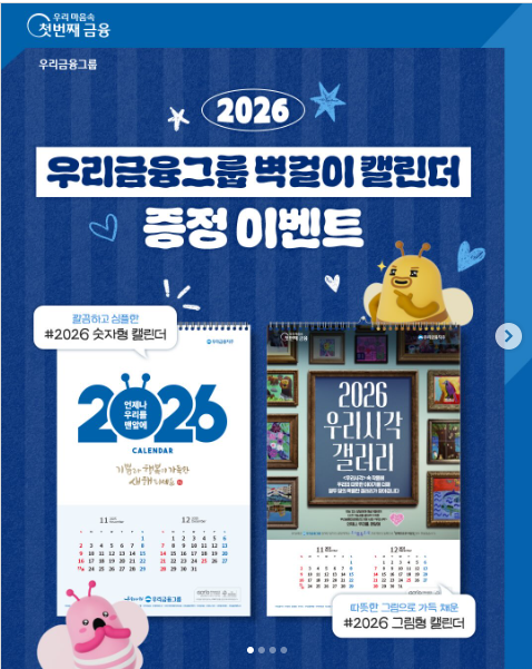 💙 이벤트 경품: 2026 우리금융그룹 벽걸이형 달력 (그림형, 숫자형 각 20명 / 총 40명)
