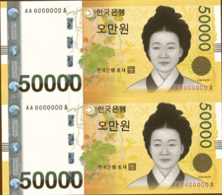 * 1번부터 100번까지(AA9000001A ~ AA9000100A)는 당행「화폐박물관」전시 예정