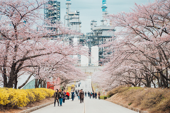 인천 대표 벚꽃 명소인 SK인천석유화학 벚꽃동산은 총 3만5천평 규모로 1.5km 길이의 산책로를 따라 심어진 600여 그루의 벚꽃나무가 울창한 군락을 이루고 있다. 회사는 매년 벚꽃 개화에 맞춰 산책로를 개방해 왔으며, 2020년부터 코로나19 여파로 개방을 일시 중단했다가 지난해 재개했다.